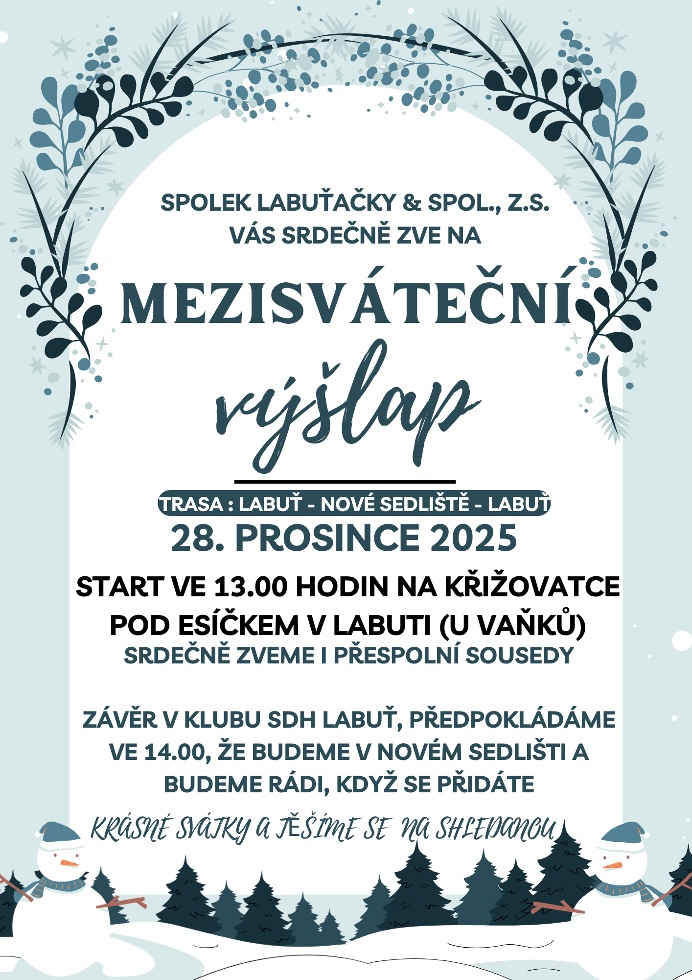 Všechny zájemce o vycházku do Nového Sedliště zveme na mezisváteční výšlap v neděli 28. 12, sraz ve 13.00 hodin na křižovatce u Vaňků. V Novém Sedlišti je domluvena možnost občerstvení, počasí objednáno, takže zítra AHOJ.